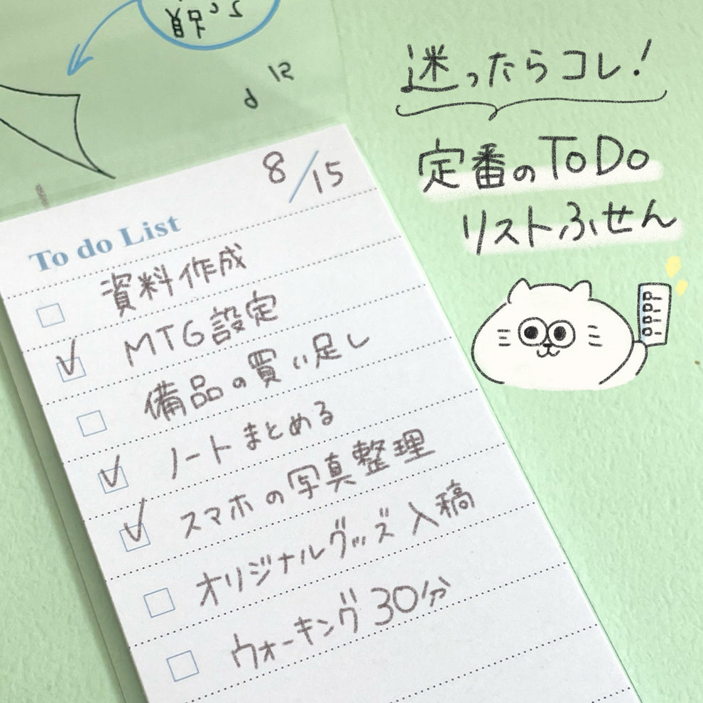 わたしが使っているのはロフト限定のものですが、当店ではほぼ同じサイズ感のTODOふせんも取り扱っていますのでぜひチェックしてみてね。