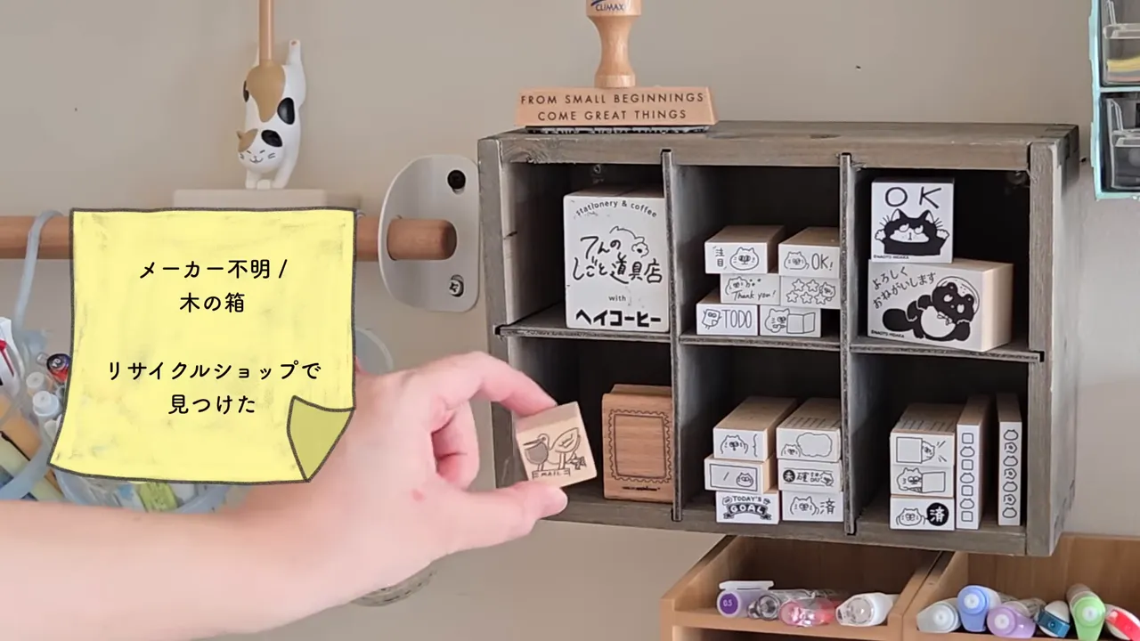 次もリサイクルショップで手に入れた木の箱です。日本だとSeriaやsalut!などでも、雰囲気が近い小物ボックスがありそうな気がします。