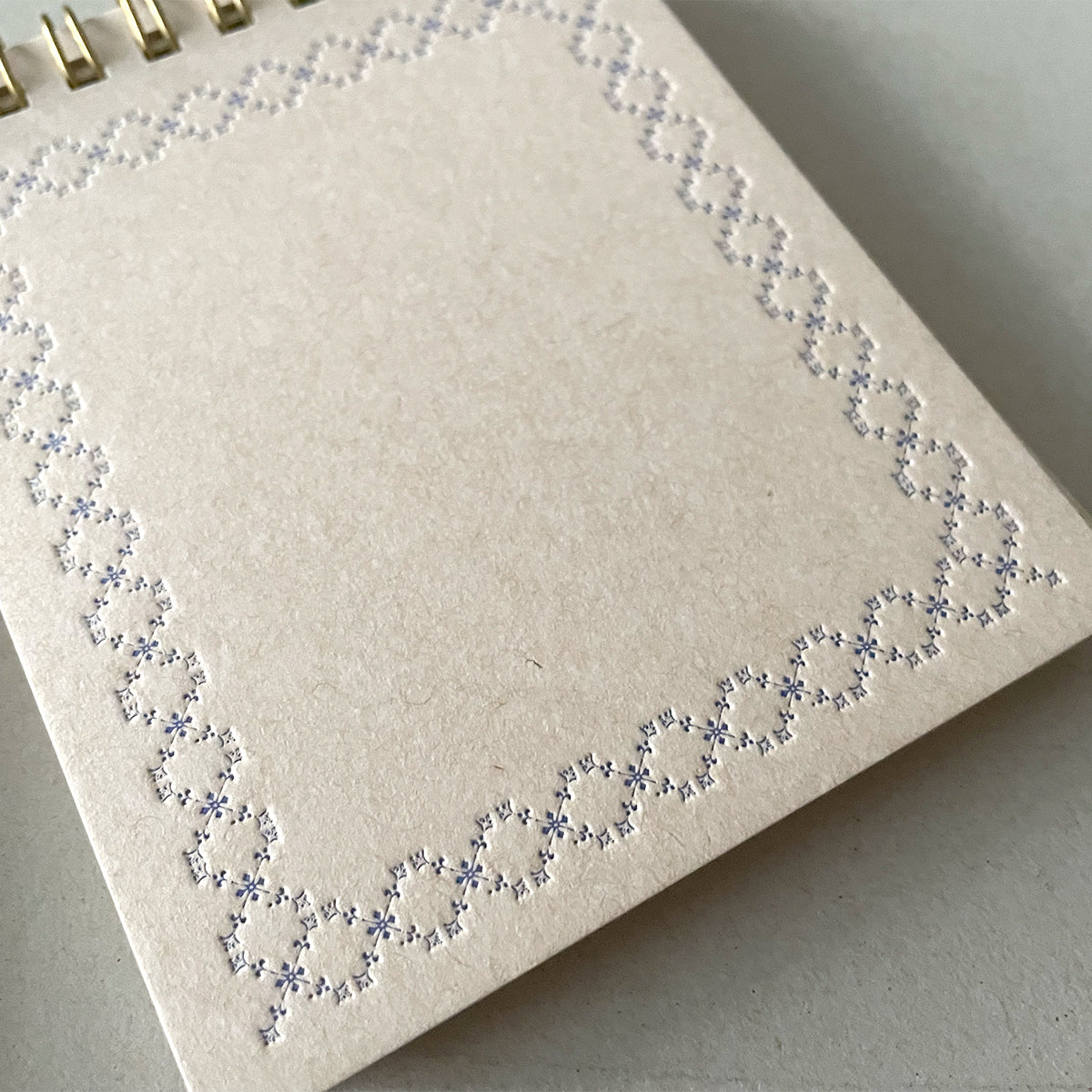 写真も素敵でしたが、実物の方がエンボスがはっきりしていて素敵でした。中の1枚1枚も書きやすいいい紙質です♪ちょっと持っていて自慢です