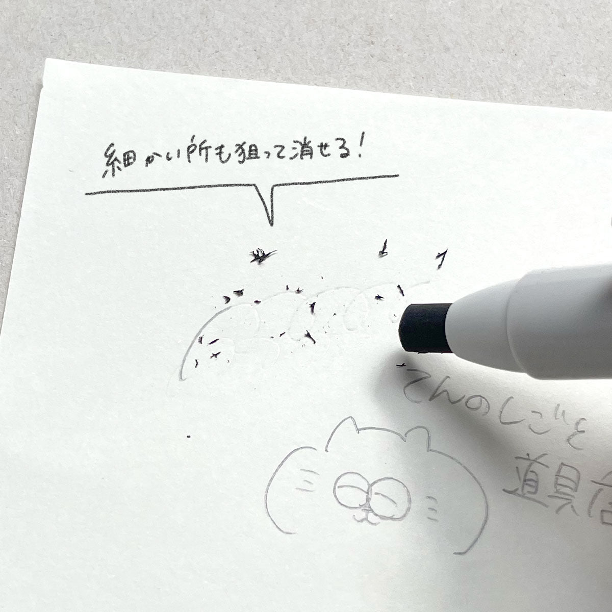 It is useful when you want to erase just one character or a line that has been drawn too much. On the other hand, it is quite difficult to erase a wide area, so please use it depending on the purpose.