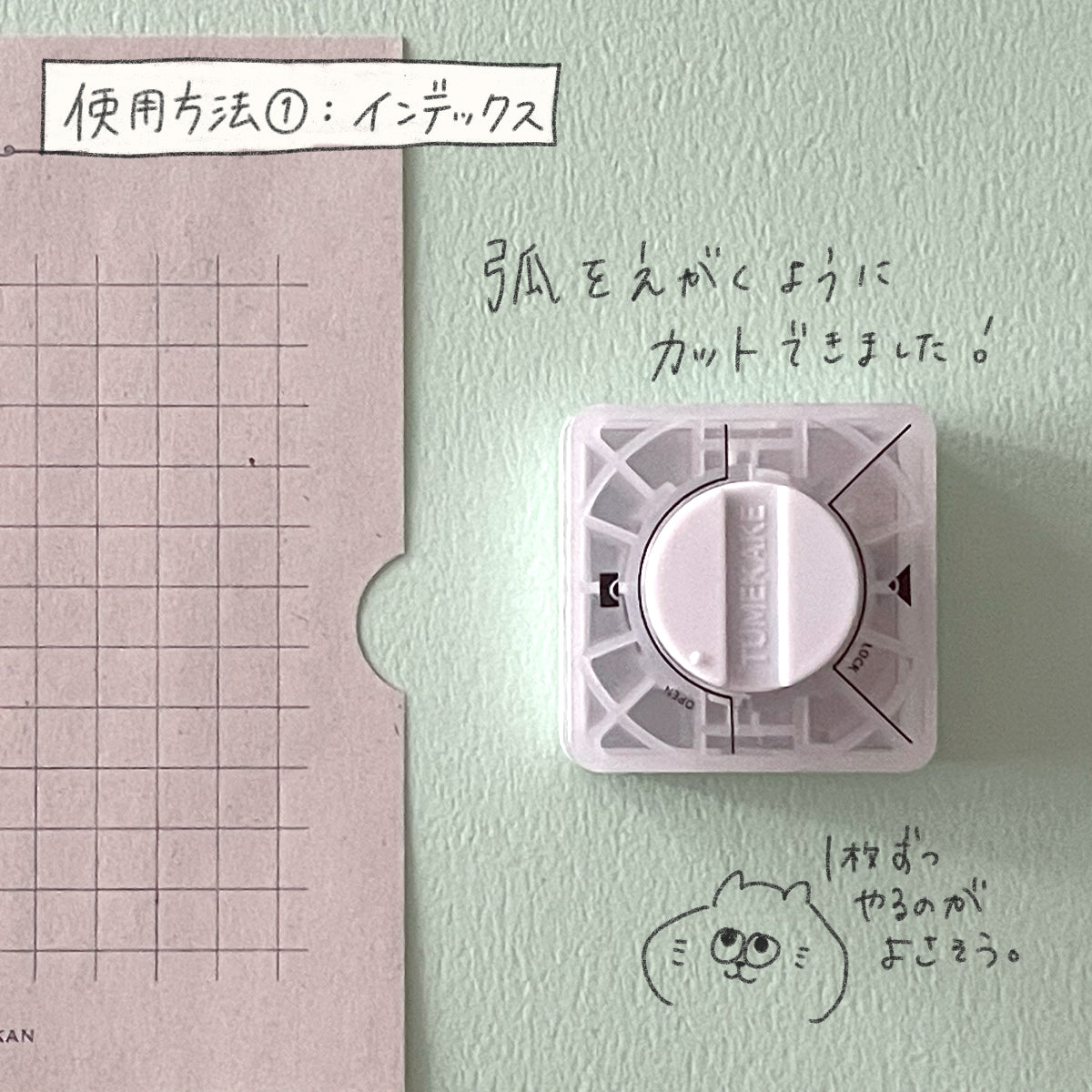 インデックスと使用済みマークが作れるツメカケパンチです。