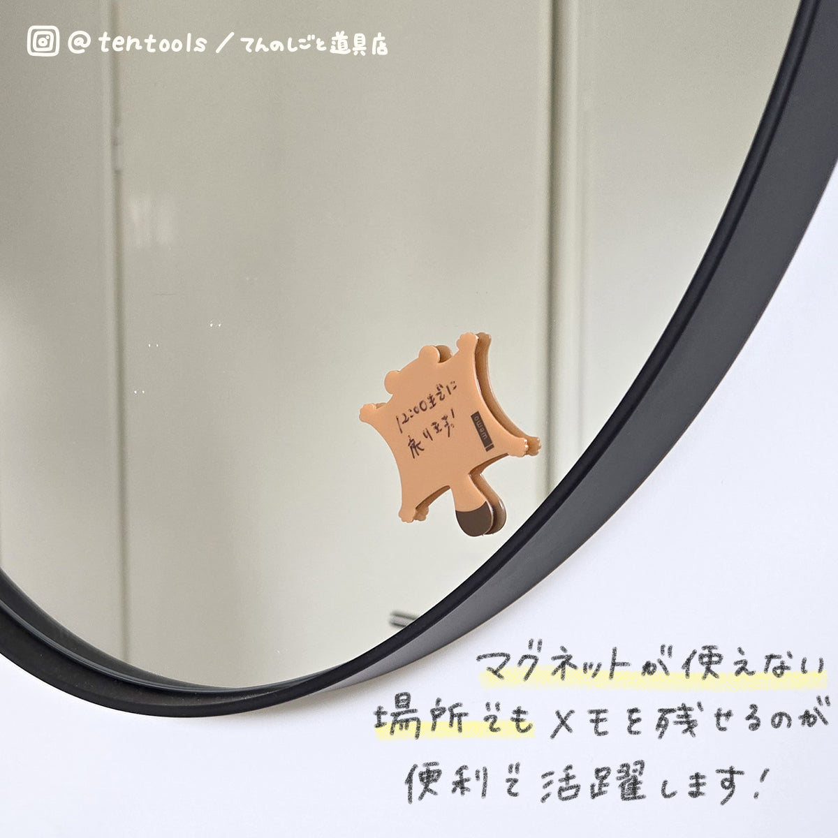 鏡や窓ガラスなどマグネットが使えない場所でもぺたっとくっつくので、メモを残すことができます。