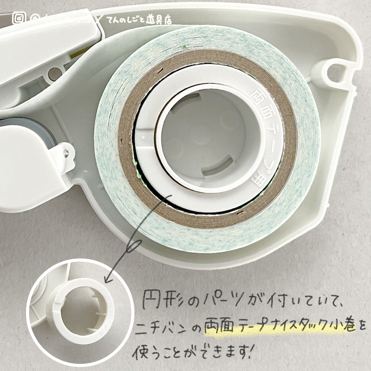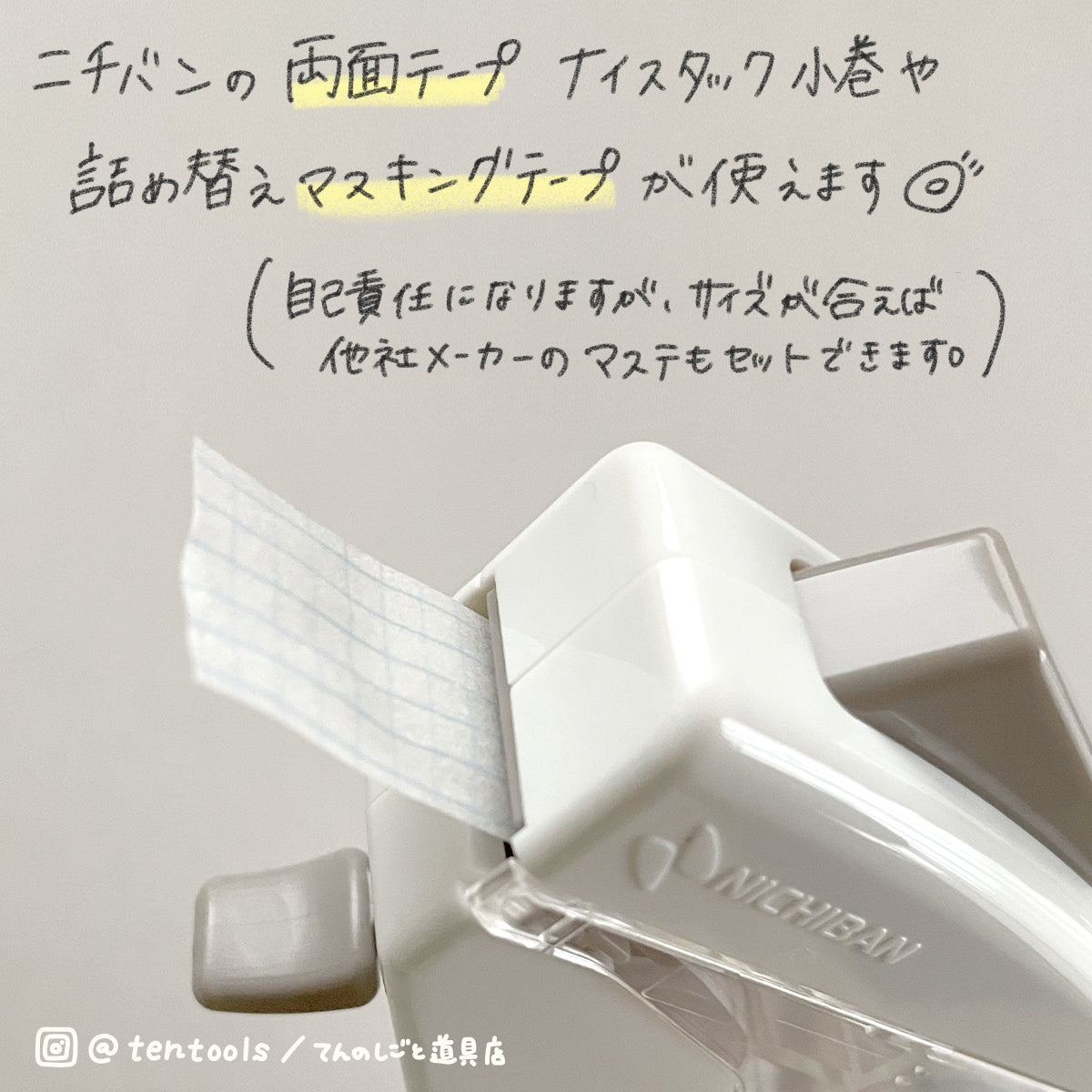 付属のアダプターを付けて両面テープ ナイスタックを、アダプターを外してマスキングテープの使用が可能です。工作・手芸などのクラフトワークや、スクラップ、ポスターやカレンダー掲示に。プラモデル製作時の塗装用マスキングや、接着剤硬化までの仮固定に。
