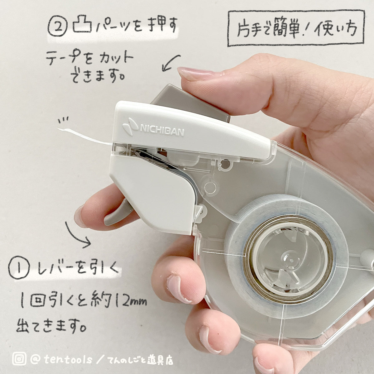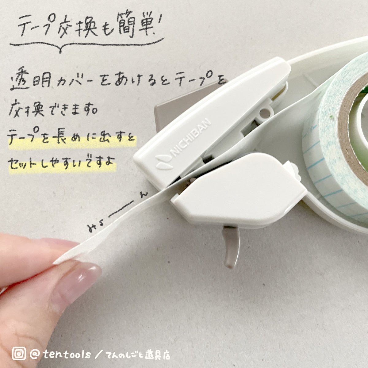 テープを片手で簡単にキレイに切れる!つまみやすい!切りやすい!便利なハンドカッター。これ1つあれば、両面テープ ナイスタック(小巻15mm幅専用※一部の品番に限ります)とマスキングテープの2種類を詰め替えて使えます。