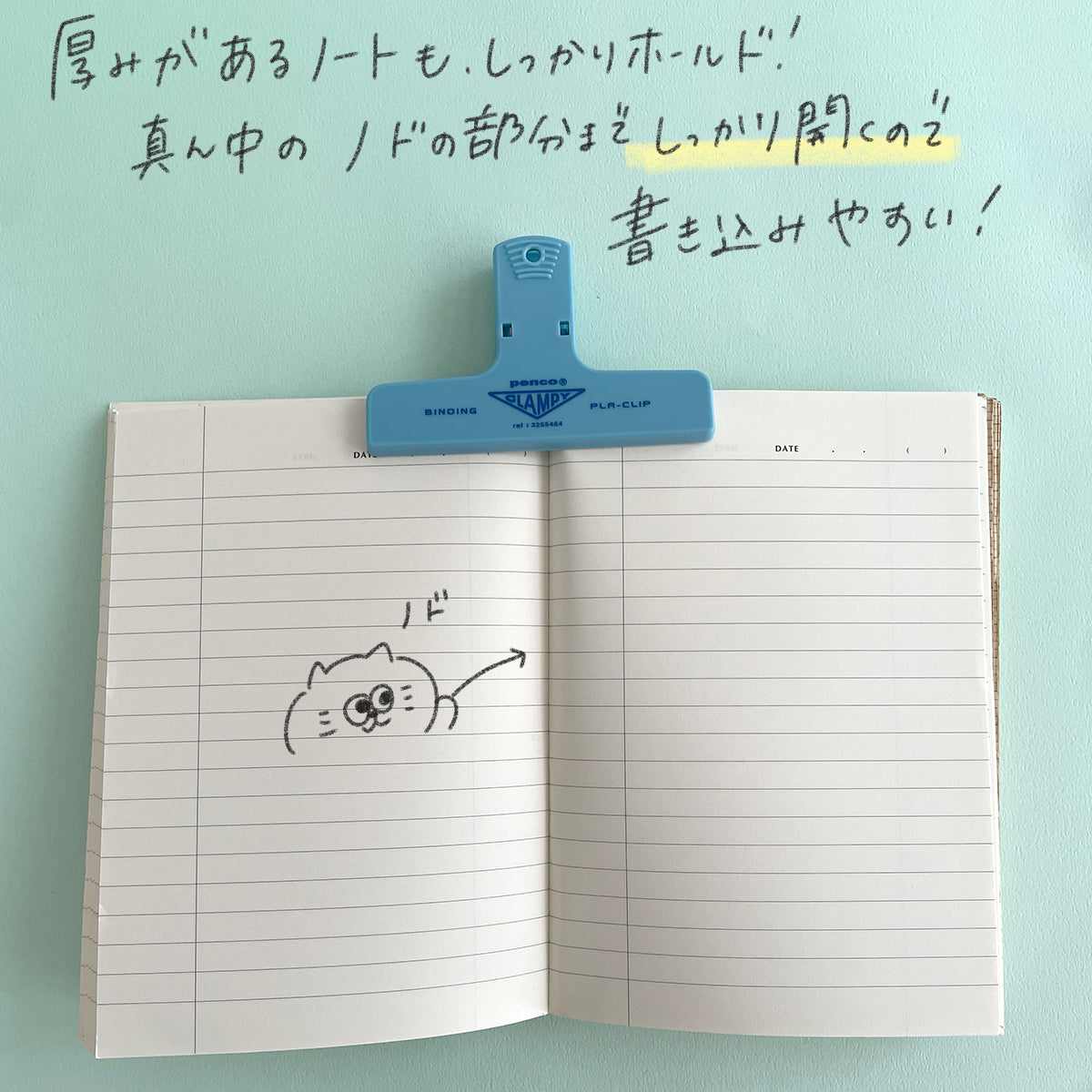 Youtubeなどで、手帳が閉じないようにプラクリップを挟んでいる場面をよく見ていたので、試しに購入してみました。確かに、使用しているモレスキンノートに書くときには重宝しています。なんか、使いたくなるんですよね、これ。