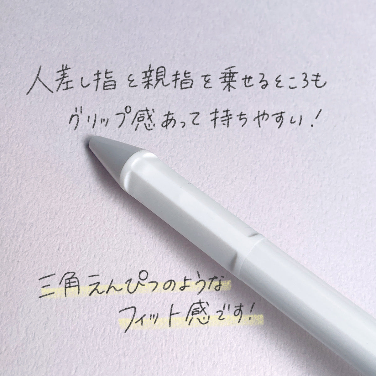 The area where you place your index finger and thumb has a nice grip, making it easy to hold. Your fingers fit naturally like a triangular pencil!