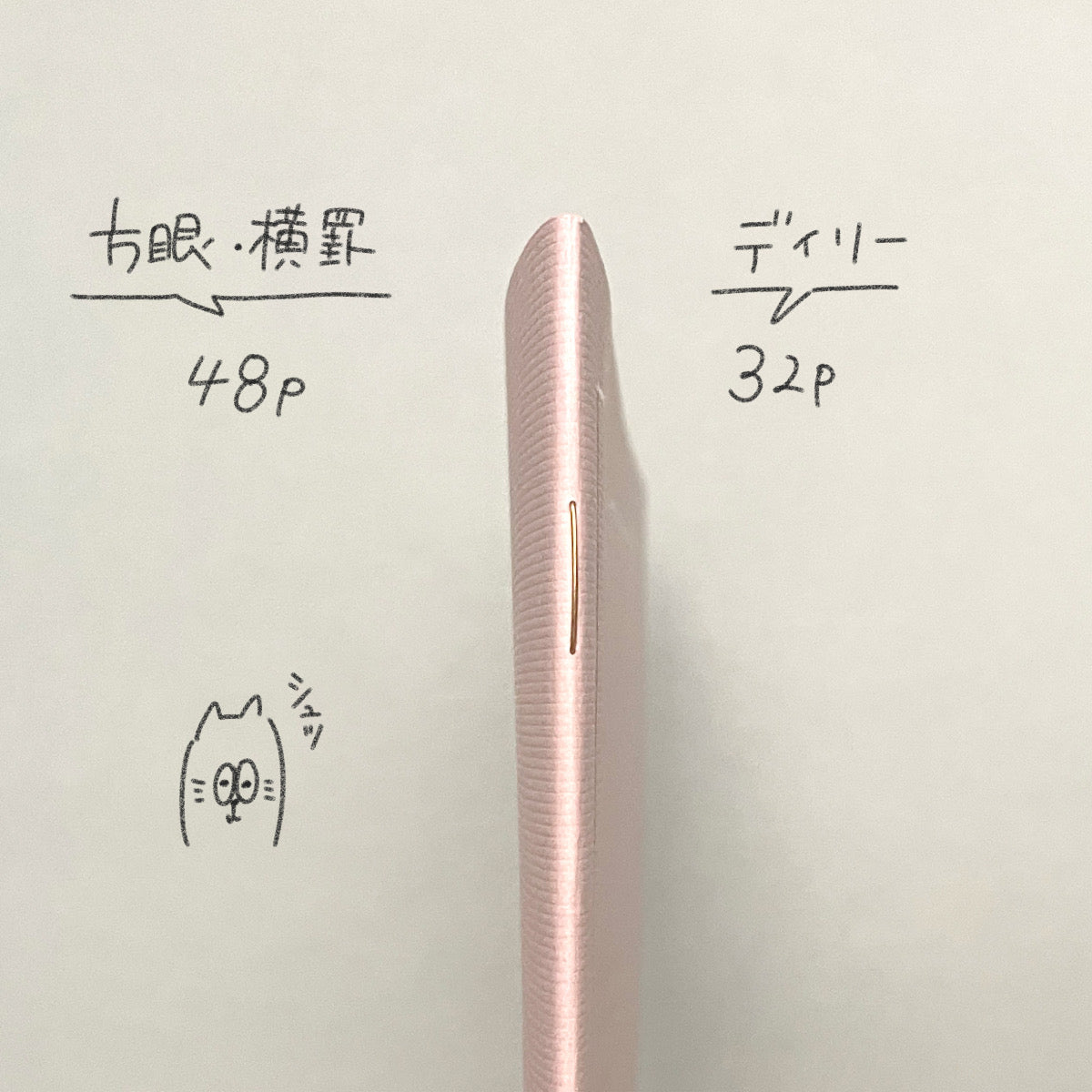 The number of pages is 48 pages for squared and ruled pages, and 32 pages for daily pages. A slim notebook that lasts about one month.