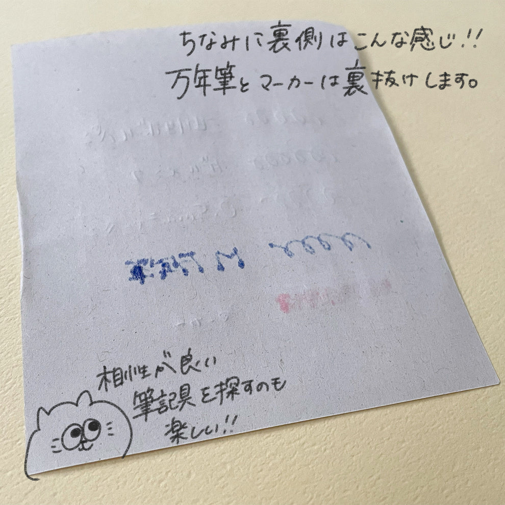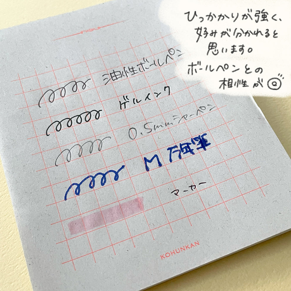 ボールペンやシャーペンでザカザカ書けるので気に入りました。ツルツルサラサラの紙面や、シャーペンが「キュッ」と鳴る書き心地が苦手な方にもおすすめしたい。あと見た目になんとなく懐かしさを覚えます。