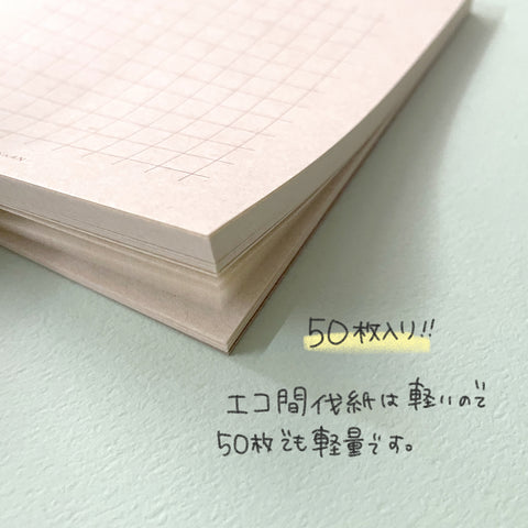 エコ間伐紙の色は共通で、方眼線の部分が2色展開です。