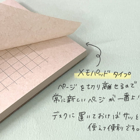 メモパッドタイプで使ったページを1枚ずつ切り離せるので、常に新しいページが一番上にきます。