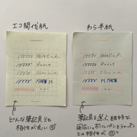 わら半紙は筆記具を選ぶ独特の風合いで、ペン先に少し引っかかるような書き心地。ボールペンやシャーペンと相性がよく、懐かしい気持ちになる人も多いかも?
