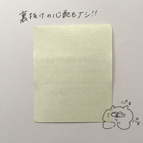 開発者曰く、エコなものを作ろうと思ってエコ間伐紙でメモ帳を作ってみたら、たまたま偶然の産物で万年筆でも滲まず裏抜けせず良い紙になったそうですよ。