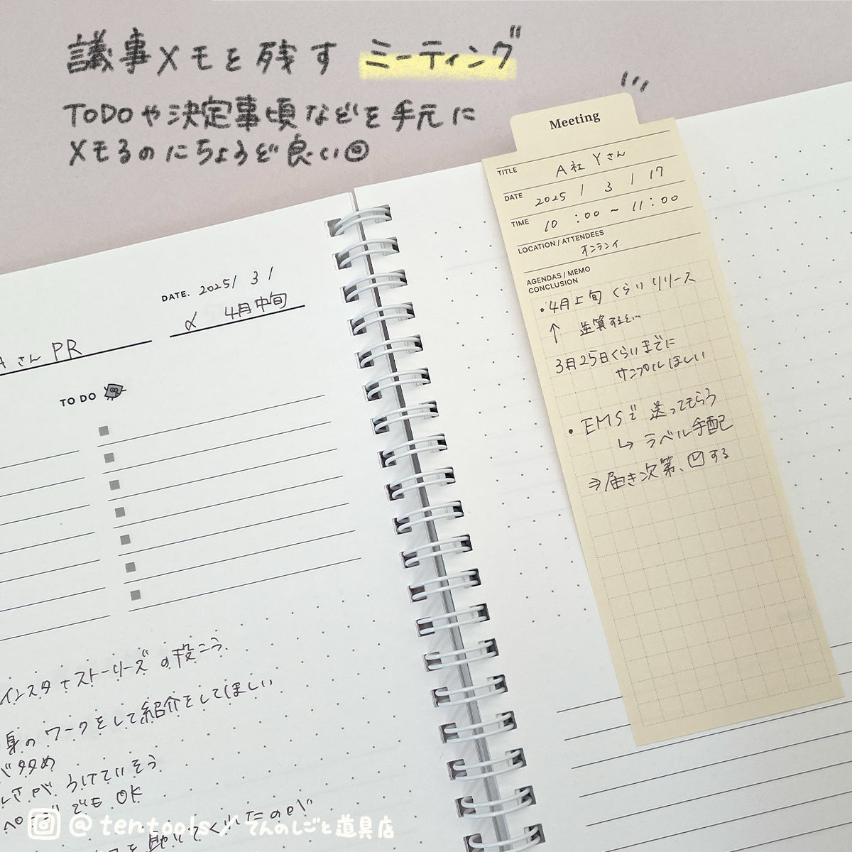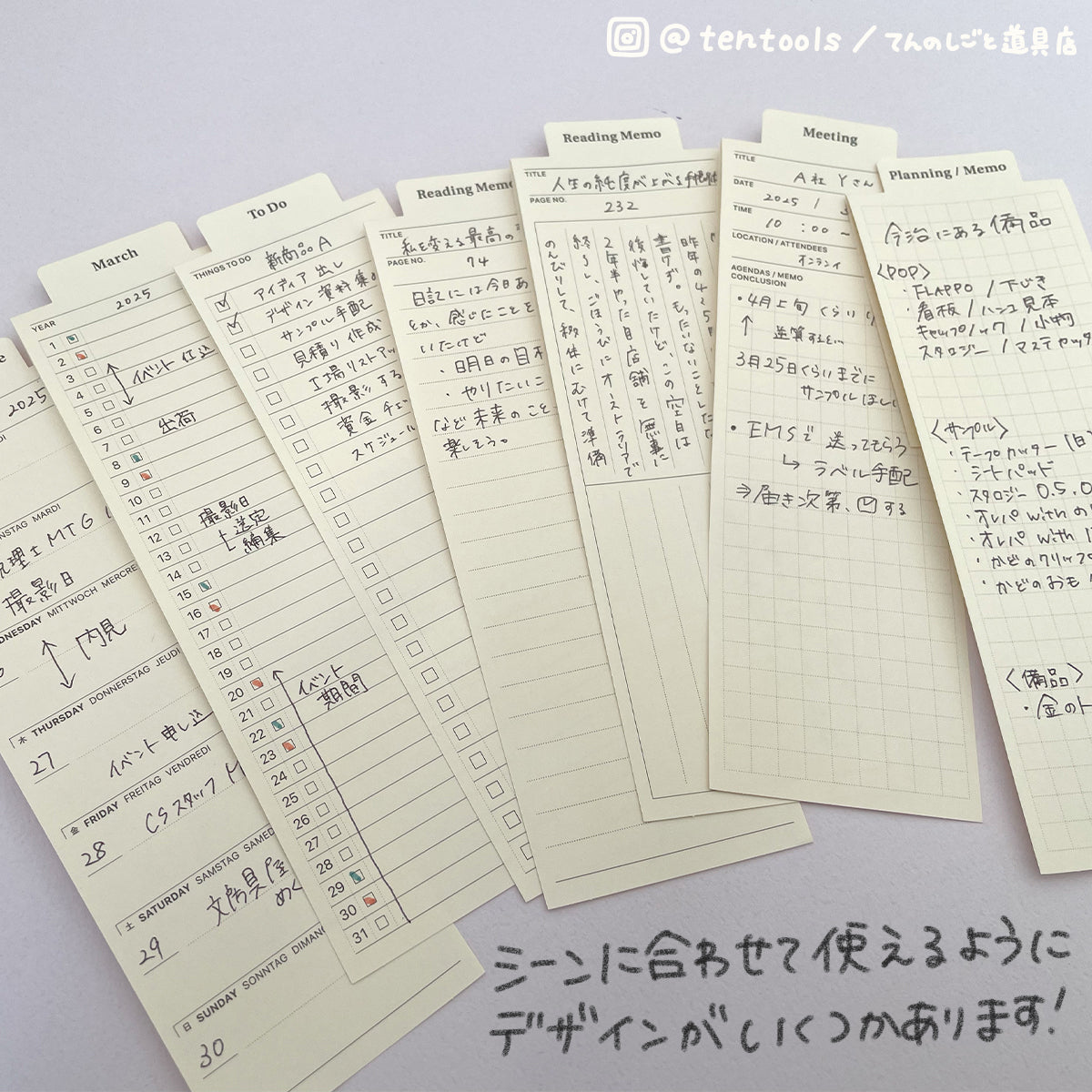 切り込みインデックスは目印になり、別のノートや手帳・書籍などへ簡単に移動ができるなど、情報を漏らさずに引き継いで使うことが出来ます。