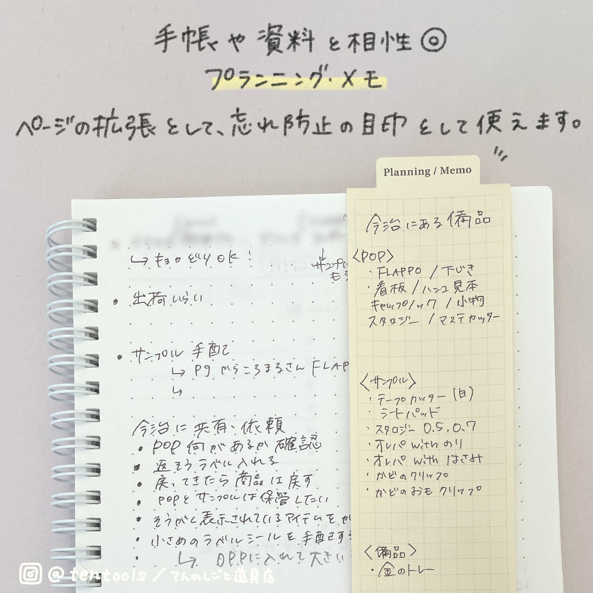 週をまたぐtodo管理にとても便利!今まで付箋で管理してたけど何回も貼り直したりしてると手帳も付箋もヘタって気を使うけれど栞タイプのコレだと挟むだけのだから移動も楽々、おまけに一目で見やすい!食料品消費期限チェックやセール時になったら買う物リストなどで愛用してます。