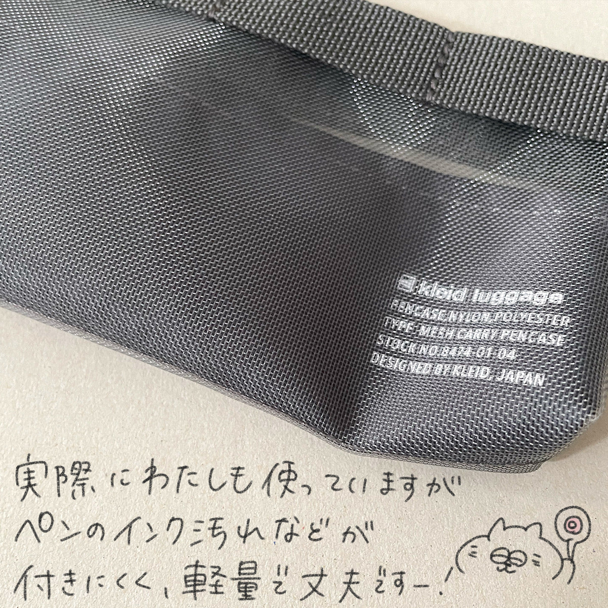 メッシュの手触りが良いのと、カバンから取り出すときに摩擦が起きないので取り出すときのストレスが少ないです。