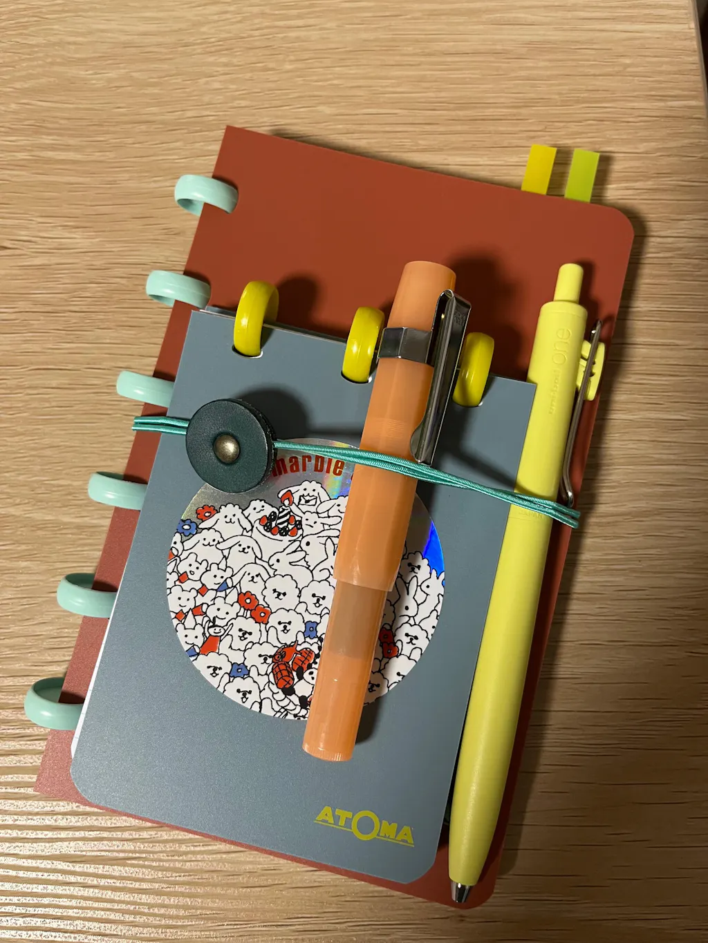 仕事柄、常にデジタルツール入力と同時にアナログでメモをとるのであとからページ入れ替え出来るatomaノートが気になっていたけど売ってなくて…。今回てんのしごとさんでステキなカラバリterra取り扱いを知り歓喜!ポケット用にA7をグリーンとレッド、デスク上用にA6をブラウンとブルー購入。一緒にBIOとTEXONも各サイズ購入出来たので仕事のカテゴリ別に8種類全てatomaに切り替えました。使ってみて…やはりメモが簡単に項目別にページ入れ替え出来るの神!筆記はシグノが主ですが筆圧高くても今のとこ裏抜け一切無いです。何よりビジュかわいいw