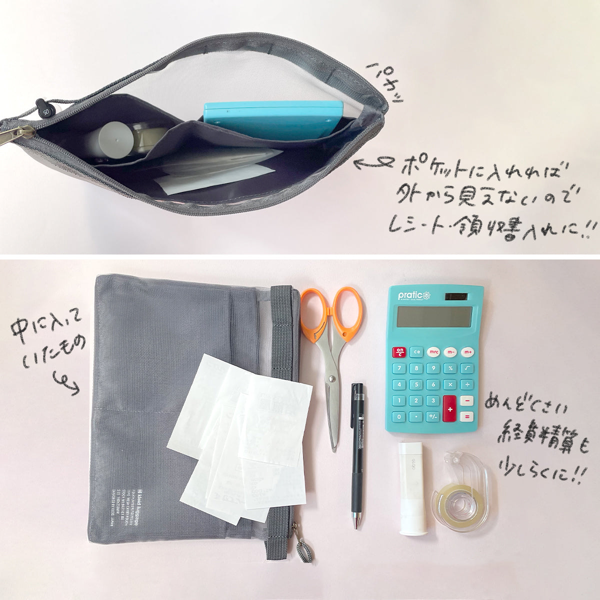 ポーチを開けずに中身がわかる