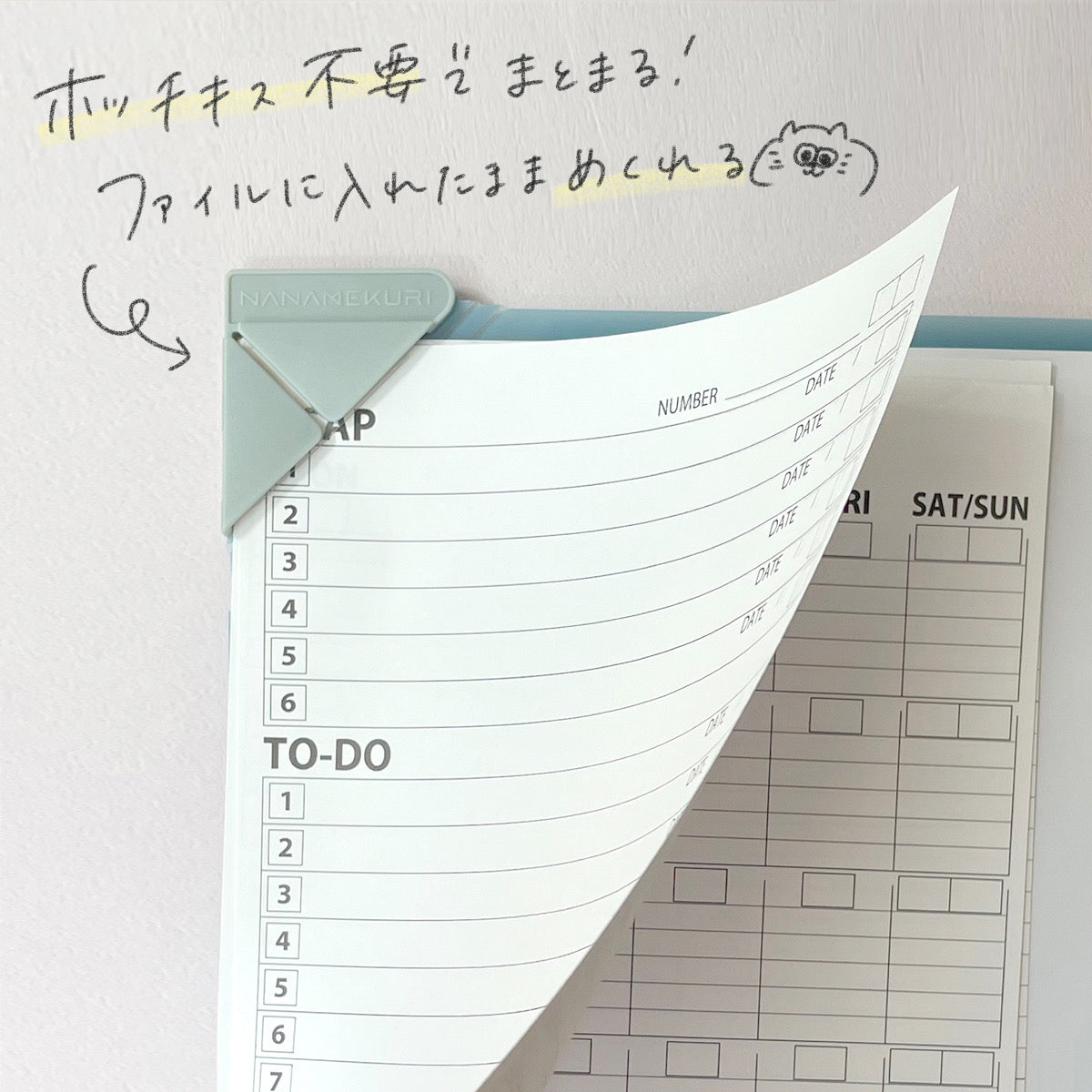 数枚の書類をめくる時などに、このナナメクリのクリップの威力を発揮しますね!